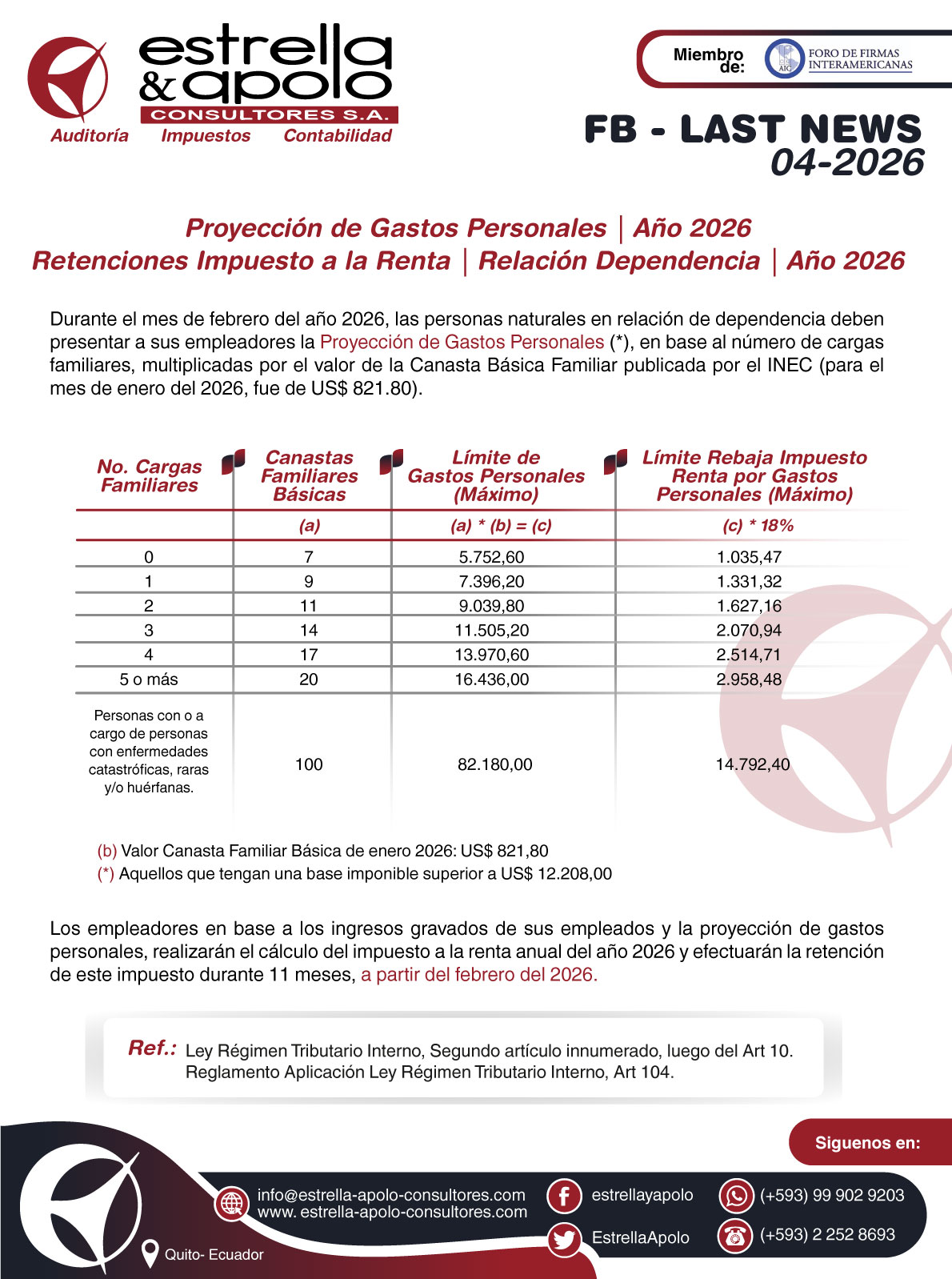 Last News 04-2026 – Proyección de Gastos Personales | Año 2026 Retenciones Impuesto a la Renta | Relación Dependencia | Año 2026 Feb 8, 2026 Last News 04-2026 – Proyección de Gastos Personales | Año 2026 Retenciones Impuesto a la Renta | Relación Dependencia | Año Descargar
